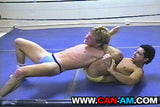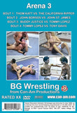 BOUT 1: THOM KATT VS. THE CALIFORNIA RIPPER This is as nasty, as low-down and dirty a match as BG has ever presented. From the moment the camera catches the California Ripper shredding his T-shirt from his spectacular body in preparation for crushing the lighter-weight arch-villain, Thom Katt, you know this is going to be a dead serious matchup. He attacks Katt, manhandling, slapping his chest and ass. At one point he grabs his hair, shows him to the camera, and flexes his right bicep – all at the same time. Katt doesn`t care for this showboating at all. He shows his displeasure by boldly grabbing the Ripper`s balls and in a long, slow bit of enforced agony brings the Ripper slowly to the mat on his stomach. And, if you can believe it, it just gets nastier from here. At the end of two falls, it is 1-1. The third fall is a lot more of the same – muscle, abuse, low blows, claw holds – in short, wrestling mayhem! Nudity. BOUT 2: JOHN BORSOS VS. JOHN ST. JAMES This is a great one-fall matchup featuring two skilled grapplers in the art of freestyle wrestling. The endurance of both is amazing. This tough, long, grueling match tests both wrestlers to the extreme. Borsos has St. James immobilized through much of the match with his favorite hold, the scissors. But St. James will not give up. And he comes back with a hold, forcefully applied, that gets his submission and win. BOUT 3: BUDDY JUSTICE VS. TOMMLY LOPEZ Buddy`s wrestling debut with BG. Buddy may look like the young, clean-cut, choir-boy type grappler, but he is anything but. Under that handsome exterior lurks a driven, intense young man. Tommy Lopez does not roll over for Justice, and gives as good as he gets. The give and take and the body punching between these two in the first fall is remarkable, until a well placed shot to Tommy`s nuts gives an advantage to Justice which leads to Lopez`s submission to a boston crab. Tommy manages a second fall victory with a tough leg full nelson, but it`s very hard road getting there. The two go at it, give and take. Justice can really take it, but boy can he give it. It`s all-out grappling in the third fall as both wrestlers badly want a victory. BOUT 4: TOMMY LOPEZ VS. TONY DAVIS A BG Wrestling Special. A jockstrap/oil combination matchup. One wrestler oils the other. Hot! At one point Tommy gives Tony`s jock a good yank and his cock and balls spill out the side. Lopez removes Tony`s jock and literally chokes him with it – that is until his opponent “cries uncleâ€. This is a match that foreshadowed BG`s “Oil Wrestling†videos several years later. Nudity/JO.