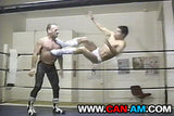 Bout 3: Kid Leopard vs. Brian Baxter - Brian was one of the hottest bodied and gamest wrestlers ever to show up at the BG wrestling doorstep. Everyone wanted to wrestle him. And why not? What a body! What a face! And what a performer! Kid Leopard gets his chance in this bout. This isn`t the easiest bout that the Kid has ever been in, but as you`ll see, he is sure having fun. The two split the first two falls with Baxter`s height and weight giving him an advantage. His strength carries him to a 2nd fall victory with an upside down bearhug that Kid Leopard struggles for a long time to avoid submission. When Baxter goes for the kill in the 3rd fall with a front bearhug, what will Kid Leopard do now to survive?