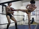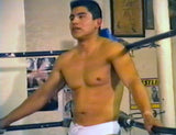 Ricky has a workout before his match against Salazar. He’s a large, strong guy with big rounded muscle. Salazar is shorter, but built like a wrestler. The two engage in muscle to muscle freestyle wrestling. Salazar knows a bit more about wrestling and emerges as a winner in this short one fall matchup.