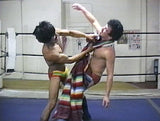 Two of the very best of BG’s Latino wrestlers go head to head in a very important pro wrestling match to decide who is the best Latino grappler in the group. La Pantera Negra has height and weight advantage, but no necessarily strength. Rojo has experience and is deadly. Both are very street-wise, no-holds-barred fighters. La Pantera Negra, as he has shown in earlier matches, is not afraid to take short cuts to victory including grabbing and squeezing someone’s balls (see Latino Wrestling 2 Bout 2). Pantera opens the first fall with good strategy execution. He aims to undermine Rojo’s ability to fight. But Rojo isn’t about to roll over. He mounts a counterattack and that is the way this matchup goes. One minute you think a particular hold is going to result in a submission, but the opponent thinks of some ingenious way of reversing the situation. This match will test the stamina and endurance of both grapplers as it goes to the full two out of three falls.