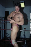 Bout #1: johnny lightning vs. Cliff conlin. lightning: 5'10", 190#, 21 yo. Conlin: 5'10", 175#,18 yo. Johnny starts out in charge, but when he throws Conlin into the ropes he ends up with a big boot in the center of his chest ending up in an arm stretch. This first fall has some neat body scissor holds and when Johnny gets Conlin's head trapped between his powerful thighs, look out! Big thigh muscle flexing and Conlin chokes from the pressure. Conlin comes back with some rough stuff of his own including an unbelievable knee lift direct to Lightning's face, and you don't think that hurts? Ouch! This is the turning point of the fall. A big body slam and a Boston crab have Johnny Lightning on energy fade and in pain. He gives! At the top of the second fall the two grapplers challenge each other to a battle of forearm smashes. Lightning loses. Conlin starts out like a house of fire. He's got Lightning backed into a corner and is assaulting him without hindrance. The arrogance of a winner takes hold and he makes a fatal mistake. He stands back and verbally assaults Johnny. Suddenly Lightning strikes! He grabs Conlin, throws him into the corner he's just come out of, and starts to methodically wear down the west coast wrestling star. Shifting from one hold to another Lightning never lets Conlin go, right up to Cliff's submission. The match is even 1-1. At the beginning of the decider fall Johnny gives Cliff a double biceps pose and asks him if "he wants some more of this" Cliff falls victim to a very muscular headlock and some more corner bashing, but in a stunning reversal he soon has Johnny Lightning worn out through a series of vicious choke holds.Bout #2: golden eagle vs. Beau hopkins. Eagle: 5'10", 210#, 29 yo. Hopkins, 5'11", 205#, 21 yo. Beau Hopkins has to be the "heartthrob" of this video, and he will certainly enter the Can-Am list of all-time best lookers with a muscular body that doesn't quit. Golden Eagle, with considerably more wrestling ability, trashes him from beginning to end in as total a squash job as any wrestling match can get. Hopkins has the potential to make you eat your heart out. Needless to say that whenever possible our camera gets down and dirty in producing Beau Hopkins video body angles that are guaranteed to raise your temperatures and perhaps something else. And you talk about skimpy trunks ending up in cracks of asses.... Whew! Ass watchers will have a field day in this matchup. But(t!) let's shift our attention to Golden Eagle for a moment. Some will find this big, brawny, bodybuilder with ultra-muscular legs will fit their own idea of visuals just as nicely as Hopkins.