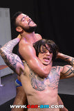 Imagine what he must be thinking when Sky Davis appears on the mat! These guys clearly come from completely different worlds! Davis is a lily white sadist, artistically inked in swirling lines across his chest, arms, and neck. With slowing, raven black hair and a chip on his shoulder, he looks like somebody who would be sitting in the back of home room dressed all in black, drawing skulls in his history book. Davis stupidly starts out by calling Cortijo a rookie, which makes Cortijo’s blood boil!