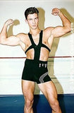 Once upon a time there were two cousins growing up together in Poland. As they matured, both young athletes got into kick-boxing and bodybuilding. Both cousins drempt of someday coming to Canada, then America, to get into movies and become the new generation Arnold Schwarzenegger and Jean Claud Van Damm. Upon arrival in Toronto, one cousin renamed himself Paul Perris, and the other cousin renamed himself Roman Stone (AKA Jamie Cutler). Both cousins continued kick-boxing and weight training to develop two of the most spectacular bodies you`ll ever see in video wrestling. Not long ago, Toronto based video producer Ron Sexton introduced the Can-Am Connoisseur Series... QUINTESSENTIAL SUBMISSIONS. Sexton`s first Quintessential Submissions / Connoisseur Series production was the mega best seller "STEVE STERLING CONQUERS CANADA." Realizing "STEVE STERLING CONQUERS CANADA" would be a very hard act to follow, Sexton knew the second video in his Connoisseur Series had to be dynamite. And who better to star in the second video of the series than real life muscle cousins Paul Perris and Roman Stone in their awesome "KICK-ASS BODYBUILDER FEUD." In addition to both musclemen being absolutely breathtaking, their "KICK-ASS BODYBUILDER FEUD" is clearly and unmistakingly one-of-a-kind and way-out-in-front of the wrestling video pack. Perris and Stone enter Can-Am`s Toronto Studio ring in their kick-boxing "suits," and begin taunting each other with their kick-boxing skills. Aggressively competitive since childhood, both Perris and Stone quickly become very serious about victory over the other, and soon childhood friendship is forgotten and their match becomes and all-out "KICK-ASS BODYBUILDER FEUD." Kick-boxing suits are torn off to reveal very sexy stretch bodygear. As tempers flare, their bodygear gets torn off to reveal very skimpy bikinis. By now the action has escalated from controlled, skilled kick-boxing to down-and-dirty pro wrestling. After a savage and painful give-and-take struggle, one of the Polish powerhunks beats the other into unconsciousness... but the victor still isn`t finished with the vanquished. He actually carries his unconscious opponent from the pro ring to the oil ring where he commences to teach his bodybuilder cousin a brutal wrestling lesson... in oil. By the end of the pro wrestling action, not only have Perris and Stone earned a wrestling match bonus for action above and beyond the call of competition... but have most probably earned a wad or two from you. But if you can take even more action, Perris and Stone aren`t finished with you yet. Not by a L-O-N-G shot. "KICK-ASS BODYBUILDER FEUD" delivers three separate and distinct muscle wrestling "scenes." One... advanced kick-boxing competition action. Two... dirty and brutal pro wrestling action. And three... spectacular muscles-in-oil punishment wrestling action. Now... get this. All three muscle action wrestling "scenes" are on one just-over-one-hour tape at an astonishing $39.00. Taped in Toronto. Edited and distributed from Hollywood. Ron Sexton`s truly sensational "KICK-ASS BODYBUILDER FEUD" blows the wrestling video competition out of the ring with the ONLY kick-boxing plus pro style plus muscle wrestling in oil video on the market. All three action styles in one mind-blowing match. Remember, Gentlemen, this is the second of Can-Am`s Connoisseur Series so you know it`s hot. Paul Perris and Roman Stone deliver more muscle action than any three wrestling matches you`ve ever seen... for $39 bucks! Who wins? You do! Order now so Perris and Stone can perform for you.... two-on-one. This match has no match........ guaranteed!