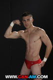 Drake Davenport is a true athlete, and he's not taking anybody's shit. Davenport stands tall and strong in red speedos. Lean and muscular, with flawless abs that stretch and tighten alluringly. With long, well-muscled arms and an "over it" half-smile, he patiently waits for his opponent to enter the ring while busting out some expertly done one-legged push-ups.Jobe Zander arrives, all threats and big talk. He paces like a nervous animal in a cage, circling the leaner, slimmer Davenport as if he means to threaten him with his powerful chest and thighs. Zander is big, beefy, with a wave of blonde hair that catches the light. Decked out in white speedos and black pro gear, he means to rip the leaner stud apart and put him back together again piece by piece.