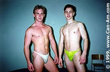 As you might expect, Can-Am Productions / Challenger Video receive frequent inquiries from models interested in being in our wrestling videos both at our Toronto Studios, and in Los Angeles. After the initial phone interview, these want-to-be-wrestlers are scheduled for a video taped wrestling audition. The most interesting of the new models and auditions are offered to you for $29 bucks. A great deal. The following two matches are the most recent auditions. Enjoy! MATCH 1 / BOBBY ROSE VS JAY MATTHEWS, with RICK HUNTER. Battling boys in oil... all three are in bare butt T-backs. Blond Bobby wearing totally transparent white, and Jay in bulge-clinging lime green, are soon joined by 20 year old blue-eyed blond hunk Rick Hunter wearing a blue T-back for a slippery, sexy, totally nude three-way hard-on. One beats the other two, Who wins? Check it out! MATCH 2 STEVE STANTON VS TONY DeMARCO. Two more eager amateurs in a strip action oil match. Tony starts out in white briefs soon stripped down to a green T-back. Steve soon looses his white briefs revealing a black T-back. When the T-backs get ripped off, the cocks get larger, and the sexy action heats up... crotch-to-crotch and faces-in-crotches, These athletic want-to-be-wrestlers are all over each other closer than oil on muscles.