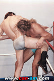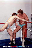 It’s December of 1996, and a pair of tight-bodied 26 year-olds are about to tie up. Andy Sutton is the shorter man, standing only 5’7. He’s the bouncy gymnast type, with a cut upper body, impressive thighs, and a package that unintentionally stands at attention through his thin grey trunks. His opponent is 6ft tall Matt Anderson, with long golden hair that tumbles down his v-shaped back like a waterfall. It’s a pro match, set squarely in the ring, as these boys go flying into one another, pounding chests, digging elbows into abs, twisting fingers backward, and wrenching arms nearly out of socket.Taller Anderson is sleepered, his nipple ring glinting in the light as he’s thrown face first onto the floor. Smaller Sutton is no slouch, as he successfully executes one aggressive hold after another, even tossing his opponent against the turnbuckles, and punching him in the guts repeatedly. “Come on, fucking pansy!†Sutton barks as he maneuvers Anderson into a camel and wrenches his neck backward with sadistic pleasure.