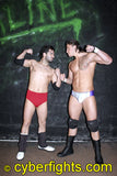 Nick Blackwell kicked and struggled beautifully in I'll Make You Suffer 1. At the mercy of a much bigger opponent, he all but cried like a baby. Maybe he's got something to prove. Maybe the sight of hungry, cranky, lounging skirt-wearing Jimmy Jacobs simply puts him in a mood to fight. Either way, he's calmer than before, standing taller, and ready to put the flex on this clown. In the shadow of powerhouse Brian Cage, it was hard to realize just how stunning, defined, and muscular Nick Blackwell really was. A perfect musculature emphasized by a curving pectoral tattoo...silvery lycra trunks trimmed with purple emphasize his lower assets...black boots and pro gear complete the effect. This is a real man, not less powerful for being pretty.