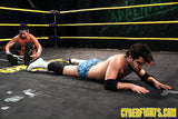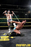 Jimmy Jacobs is easily one of the most vivid personalities in wrestling today. There’s simply nobody like him, and he own that distinction with every movement and word...with every nipple piercing and leg warmer...with every headband and hairstyle. Chasyn Rance is a vision of flawless hotness in tropical speedos and glossy wrestling boots. Two men. Bull rope. Tape. Just wait…