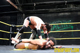 Handsome pro hunk Jeremy Prophet is a smiling stud in green speedos, boots, and knee pads, and he’s easily amused by Jimmy Jacobs’ trademark trashtalk and attitude. But Prophet isn’t here to talk...he’s here to kick some bitch ass...and Jacobs is the bitch.Fingers lock, chests grind, fighters are driven into the ropes...heads plow into balls! It’s gonna be a fracas, as Jacobs drives the bigger man to his knees, choking him with his own arms and biting his ear like a maniac.