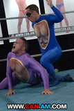 Get ready for the fight of your life, as heroes crash, clash, beat, and battle each other in the only place that can house the powers of true greatness...the ring! The question, as ever, is who`s the best? As kids, many a Hard Heroes fan lined up every action figure, only to pit them against each other in elaborate tests of strength and skill, trying out different pairings and different holds. Hard Heroes Pro Wrestling 4 is the grown-up version of that fantasy, brought to throbbing, erotic life by four of the hottest heroes imaginable. Fire Starter (Jobe Zander) is a flaxen-haired hero in skintight red and gold attire. With an ability to channel the very fires of doom, he is ready to take on any opponent, shooting burning blazes of heat and horror from his fingertips. Purple Haze (Donnie Drake) is not afraid, causing mini earthquakes with his impressive shock waves. Purple Haze is a beast in fitting purple lycra that leaves his washboard abs and powerful chest completely exposed. The two impressive specimens toss each other from one end of the ring to the other, until Haze mounts a fallen Firestarter, straddling him like a pony and sending a violent shock wave through his flailing body with fists and fury.Ice (Rio Garza) and Electro (Cameron Matthews) face off in matching dark purple and yellow attire. Twins, right down to the masks, these two heroic hardbodies have a score to settle, going exposed chest to exposed chest, in a leaping, pounding, sometimes crawling on hands and knees beat-down battle of revenge. Booted feet against windpipes...blasts of blue electricity, and sharp threats and taunts make this battle of two seemingly equal enemies a true struggle for supremacy. Soon Electro is facing off against Purple Haze is a ferocious fight that shakes the roof and sends sparks flying. Lighter purple plays against darker purple, and these heroes give as good as they get in this exercise in flawless flying, flipping, and landing, all while tormenting each other with words, fists, kicks, and crotch attacks. Which shade of purple will emerge victorious? At last the fighting comes full circle, with a raging battle between two age old enemies...fire and ice! "Time to finish you off," Firestarter says with confidence, certain his powers of heat will melt sex-on-a-stick Ice. Only Ice seems to be the more powerful one, overtaking Firestarter in a series of frozen blasts that render the red-clad lad completely useless. But the tables turn abruptly, changing hands again and again as these two sworn enemies take turns topping one another with larger and larger blasts of heat and cold. "I`ve no intention of losing today!" one combatant roars, standing over his fallen foe.